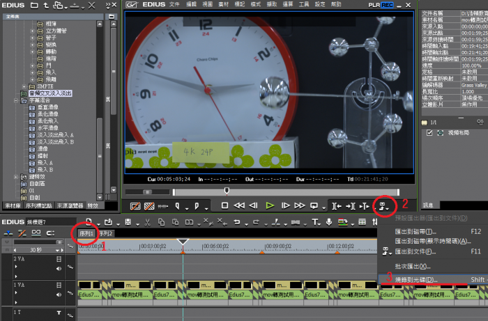 EDIUS 時間軸選單製作為簡易選單功能其目的為加速製作流程,以下為相關操作說明:﹝可點選下方說明圖示參考﹞