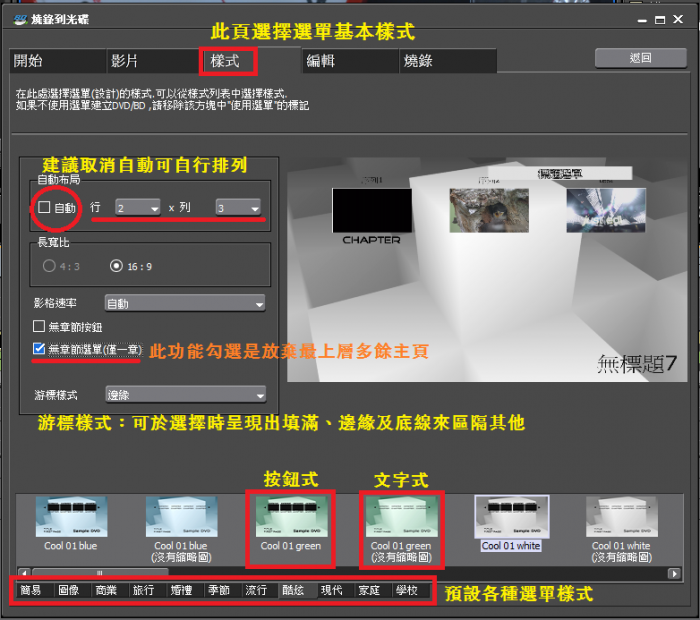 3_3_燒錄到光碟_樣式頁面選擇選單基本樣式