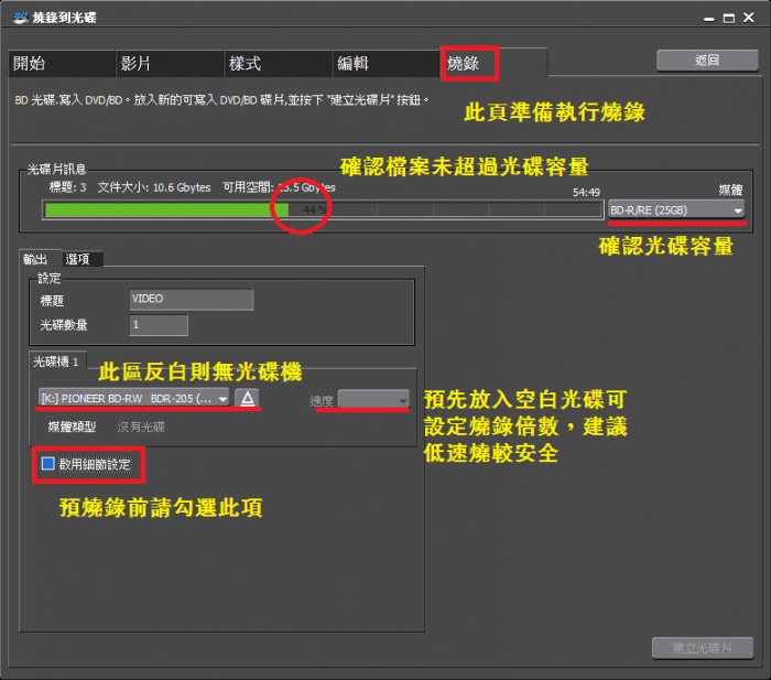 5_2_燒錄到光碟_燒錄頁面_燒錄前一定要確認工作區以防轉檔時無暫存空間而失敗
