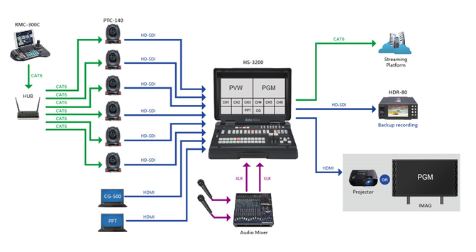 電腦或筆記型電腦即可製作出專業的字幕效果,並透過HDMI 介面連接導播機