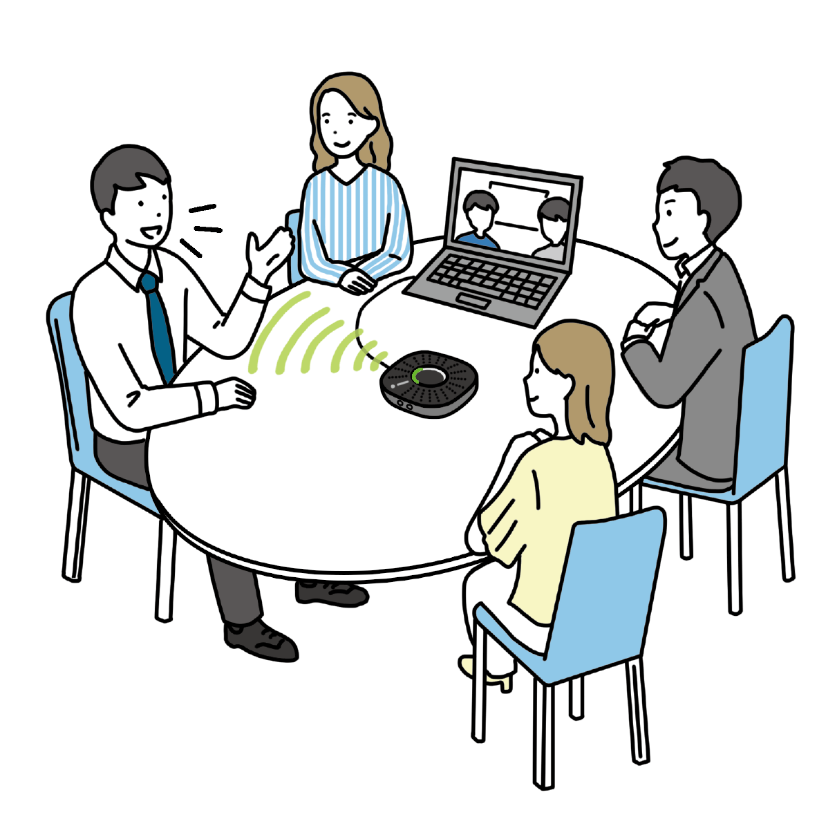 | 一.波束成型收音麥克風 自動追蹤發言者的聲音 波束成形功能可以偵測發言者的聲音*並自動對焦, 將清晰的聲音傳達給通話對象。 *偵測到的發聲方向會亮起綠色LED指示燈。 |