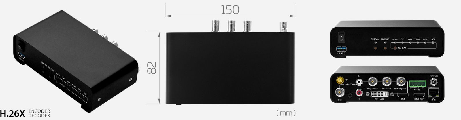 SC6D0N4 AIO 串流直播盒可以藉由HDMI / SDI信號流功能通過H264硬體壓縮將輸入源保存到本地USB